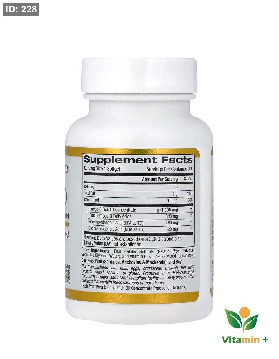 يتميز زيت سمك أوميجا 800 فائق التركيز الغني بأوميجا-3 من California Gold Nutrition® بأنه مكمل غذائي يومي سهل التناول يسهل عليك إضافة مزيد من أحماض أوميجا-3 إلى نظامك الغذائي حيث صُنِع خصيصًا للأفراد الذين يبحثون عن كبسولة هلامية يومية فائقة التركيز.