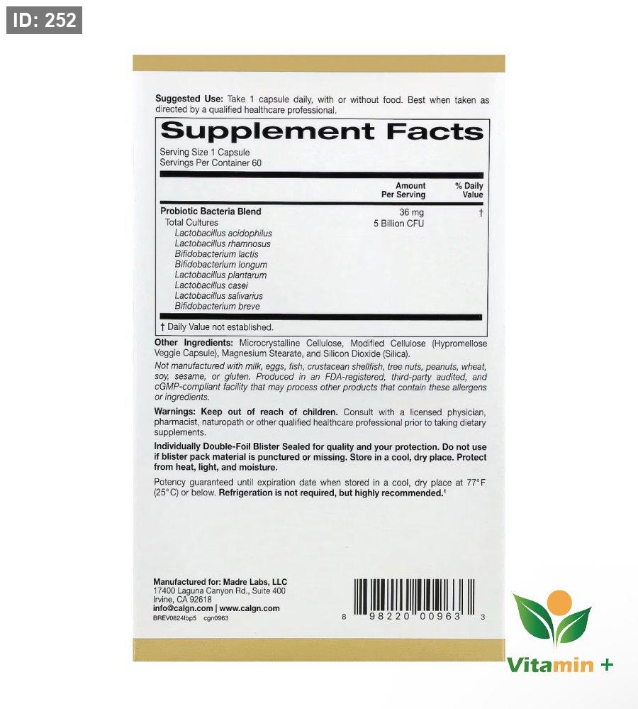 يحتوي بروبيوتيك Lactobif® 5 من California Gold Nutrition على 8 سلالات نشطة من البروبيوتيك، بما في ذلك 5 سلالات من بكتيريا الملبنة و3 سلالات من بكتيريا الشقاء. تحتوي كل كبسولة نباتية على 5 مليارات وحدة تشكيل مستعمرة لمد الجسم بكمية فعالة من البكتيريا النافعة.