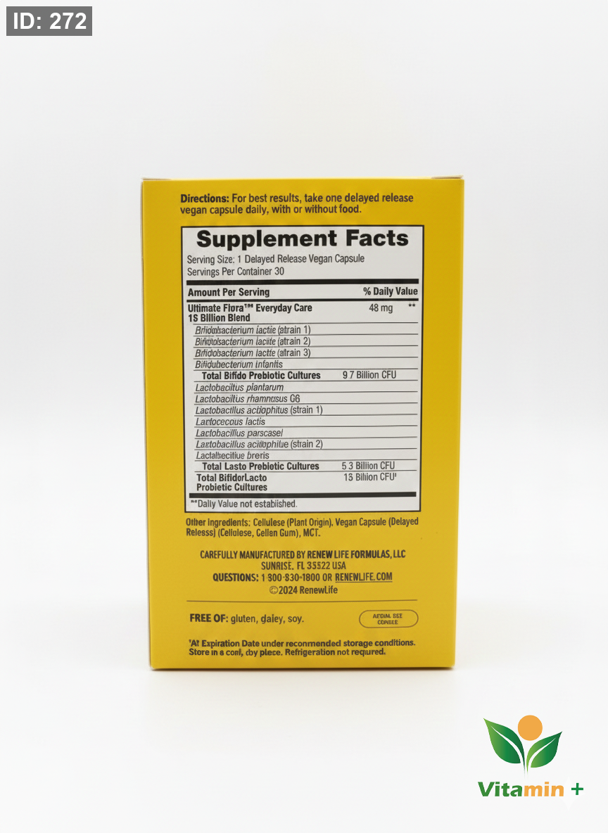 • 12 سلالة بكتيرية: مزيج شامل من السلالات التي تدعم الهضم الدقيق والامتصاص المثالي للعناصر الغذائية.