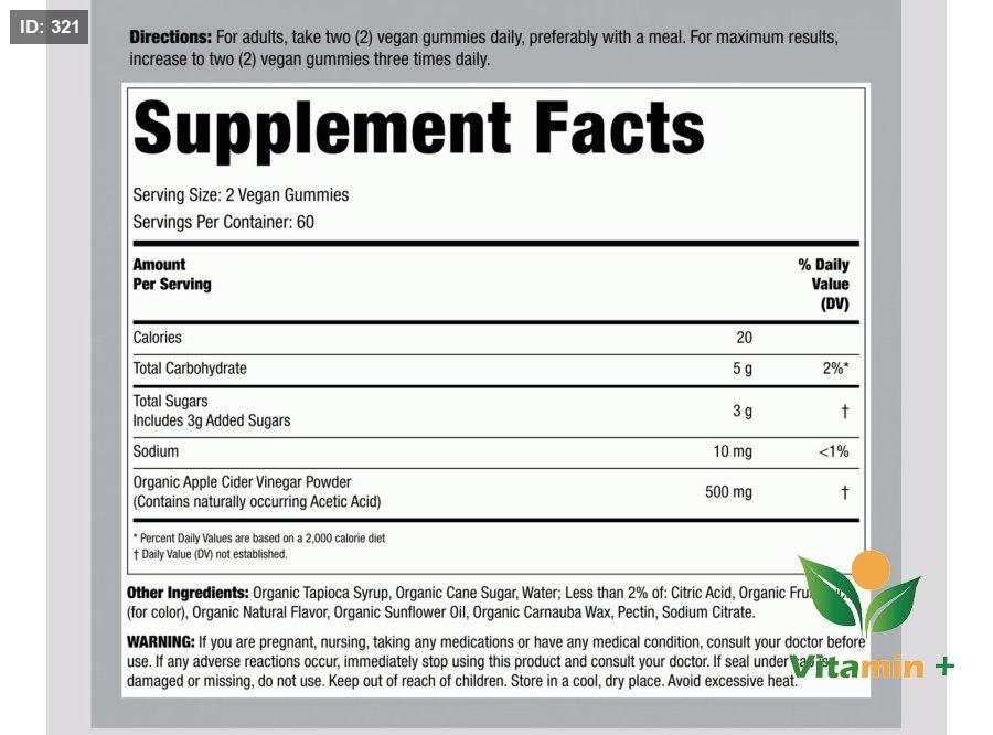 • تركيز قوي: تحتوي كل حصة (علكتان) على 500 ملجم من خل التفاح.